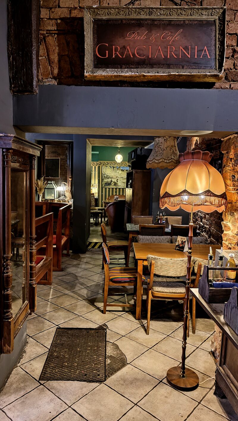 Graciarnia to trzy sale, klimatyczne wnętrza pełne „gratów” oraz mnóstwo tajemnic i zakamarków do odkrycia. Jeśli pogoda pozwala otwieramy dla was nasz ogródek w dziedzińcu kamienicy, w którym możecie odpocząć od zgiełku miasta. Na barze czeka na was przemiła obsługa złożona ze starych pijaków i meneli oraz sympatycznych barmanek, tworząca luźną atmosferę miejsca, dzięki której można się poczuć jak u siebie.